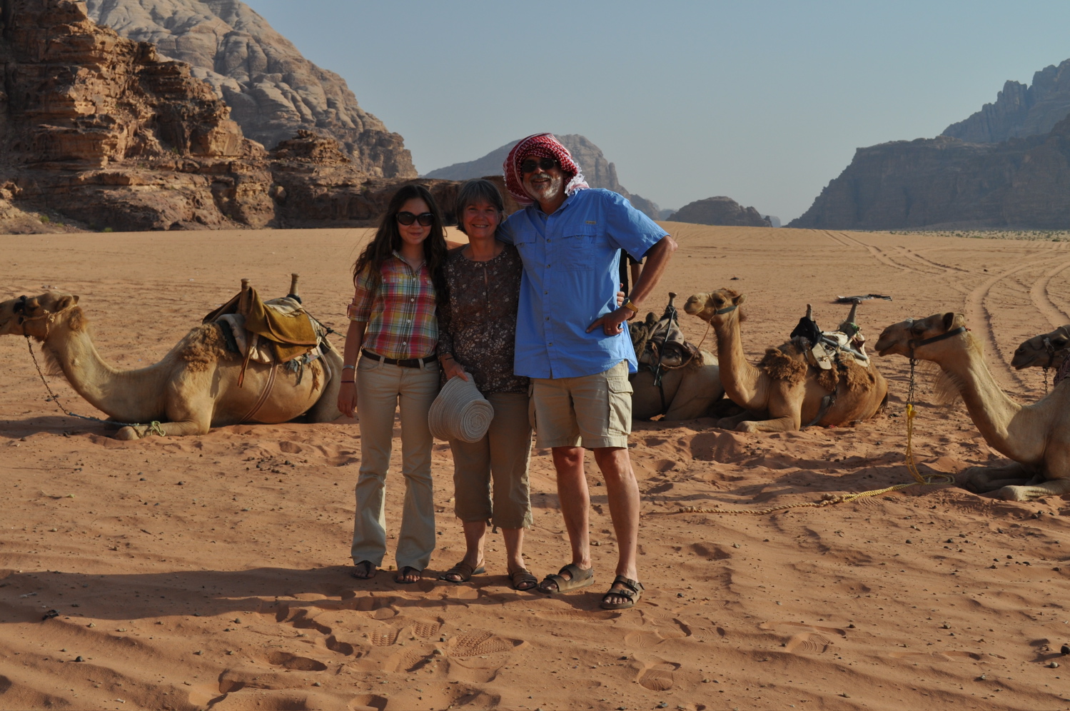 Among his interests outside the classroom are reading, writing, hiking, cycling, guitar, photography, and traveling. Dr. Pruett's wife, Suzanne Fiederlein, is the associate director of JMU's Center for International Stabilization and Recovery (CISR). They have one daughter, Elena, an undergraduate student at Brown University. A photo below shows the family in summer 2010 in Jordan, where Suzanne's work has taken her numerous times.